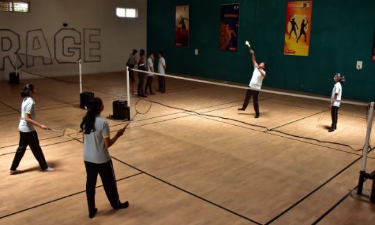 In addition to the classrooms, the school has a fully-equipped library, an auditorium, a computer center, faculty rooms, and on-campus hostel facility for students. We have also an ozonized swimming pool, in-house Badminton Court, Table Tennis and Gym facilities.